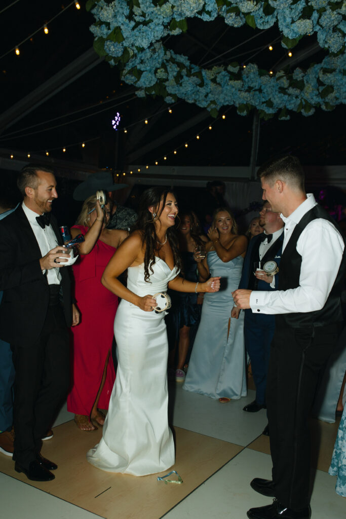 Abby and Brady’s reception at Boxwood Estate felt like a true extension of the day—effortless, joyful, and full of movement. Beneath a clear tent, the evening unfolded with a candlelit dinner that glowed as the sun faded, a live band filling the space with energy and drawing guests onto the dance floor between courses. Later, guests wandered out for scoops from an ice cream dessert cart, laughter spilling into the night air, before the celebration reached its final, unforgettable moment: a burst of confetti under the tent as the band played on. It was the kind of ending that didn’t feel staged, just fully lived—perfectly reflecting Abby and Brady’s desire to celebrate without rushing, soaking in every last second together.A